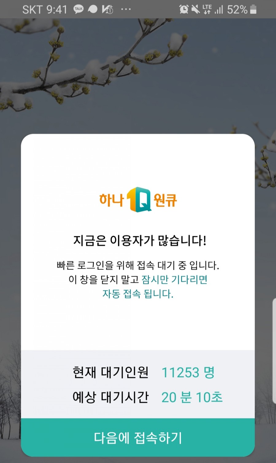 9시가 좀 넘은 이른 시간에 가입하는데도