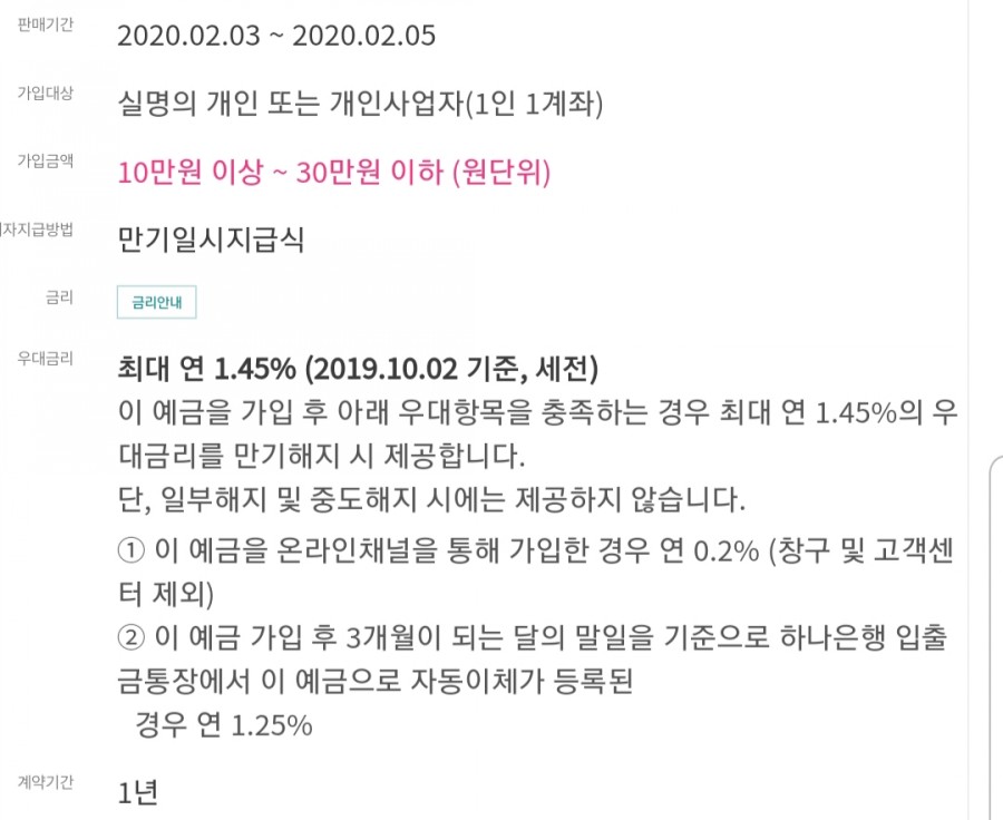 하나은행에서 아주 괜찮은 특판 적금이 있다는 것을 알고 오늘 오전 출근길에 가입 완료 하였다.
