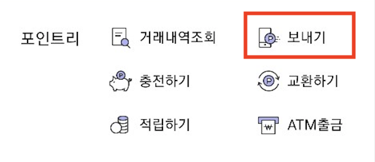 ATM 기를 통해 현금을 뽑거나, 국민은행 계좌로 포인트를 송금하는 방식이다.