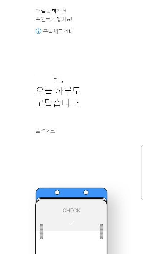 앱의 출석 체크를 완료하면 하루에 3P 적립이 가능하다.