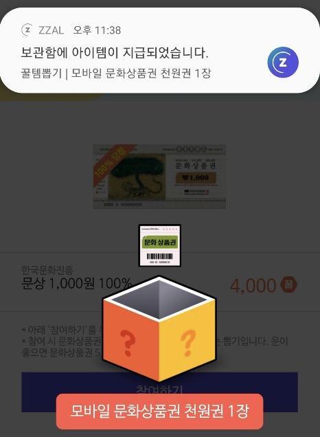 짤을 통해 문화상품권 획득시