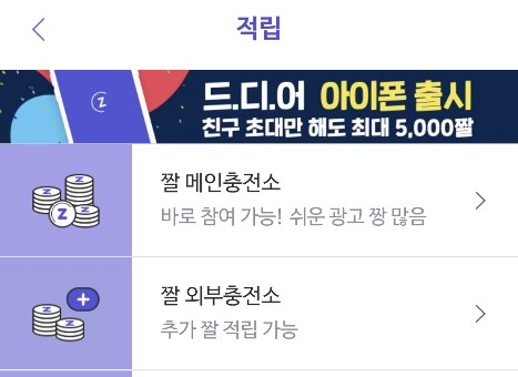 짤 메인 충전소와 외부 충전소에서 적립 가능하다.