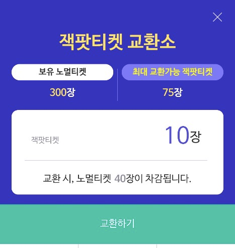 이렇게 모은 노멀티켓은 잭팟티켓으로 교환이 가능하며,