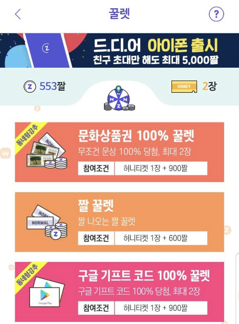 허니티켓은 꿀렛이라는 뽑기를 통해