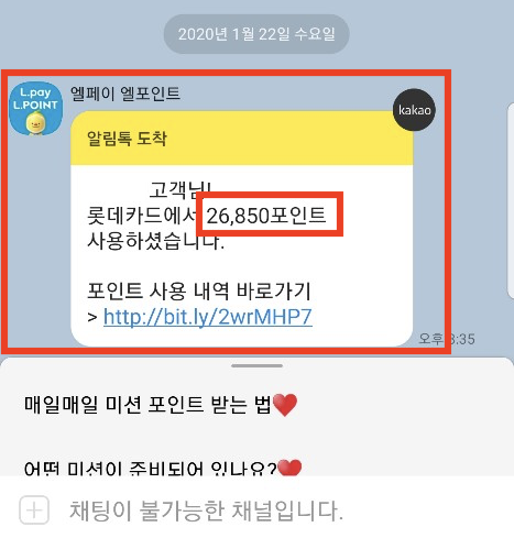카카오톡으로 사용 포인트 정보를 전송해 준다.