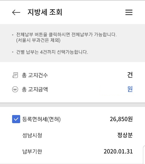 따라서 납부할 지방세가 26,850원이라도