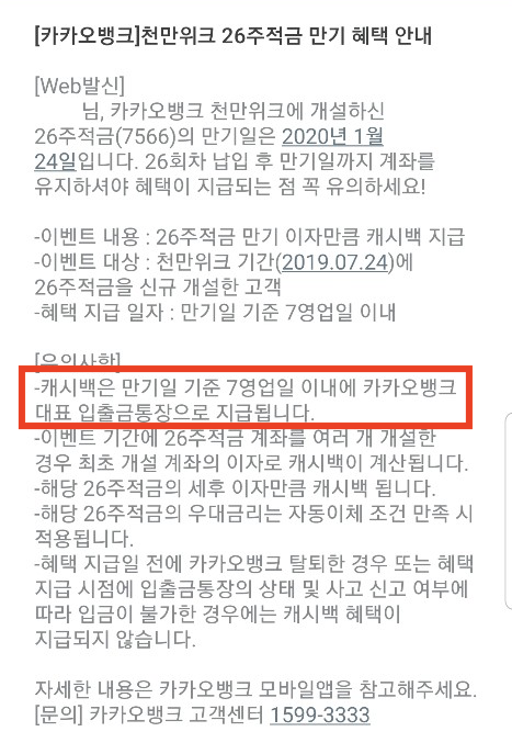 7영업일 내 추가 이자 캐쉬백이 지급된다고 하니