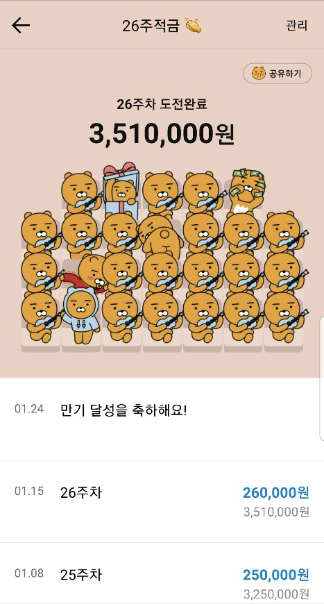 카카오뱅크 26주 적금 챌린지 완수