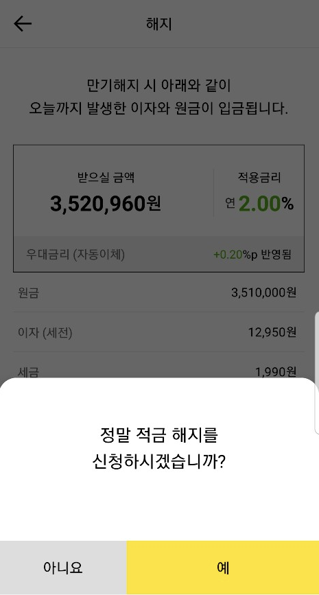 적금을 찾고 싶으면 직접 해지하면 된다고 한다.