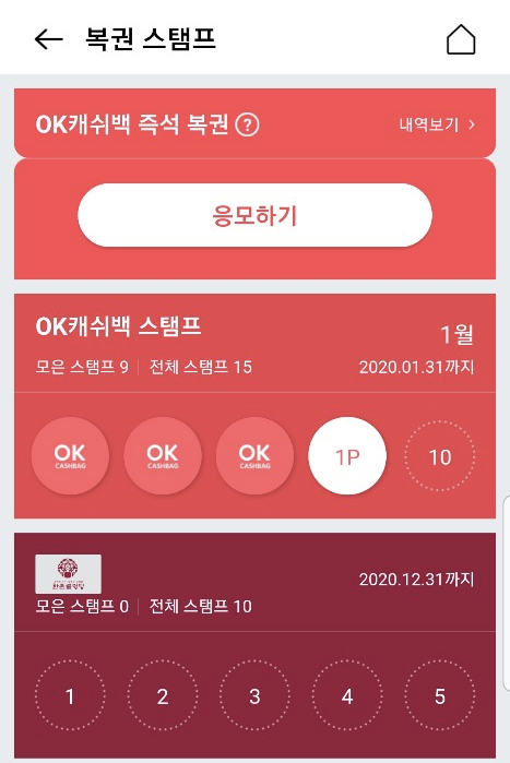 OK캐쉬백 즉석 복권을 이용해 스탬프를 획득하여 포인트를 얻을 수 있다.