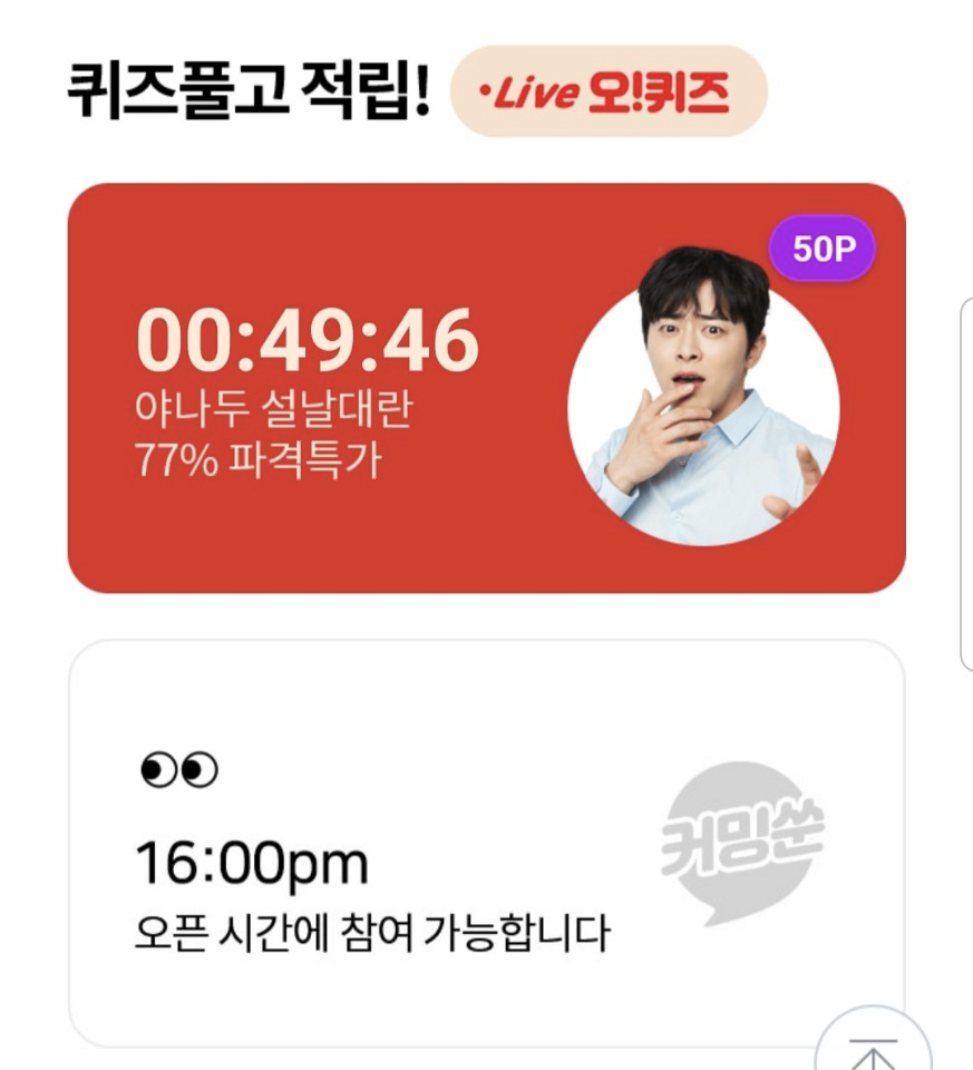 마지막으로 특정 시간대 마다 열리는 퀴즈에 참여해