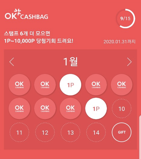 한달 모두 출석 완료시 4주 총 40P가 적립 되겠다.