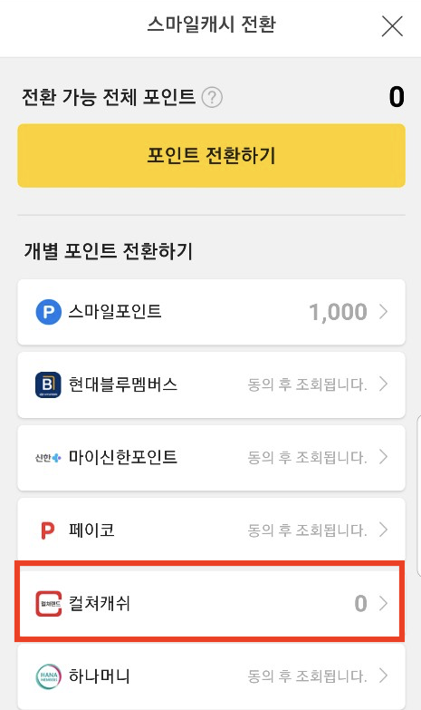 아래와 같이 전환 가능 포인트가 0 으로 보이게 된다.