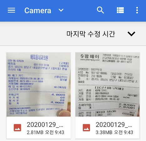 영수증 촬영한 사진 등록 후