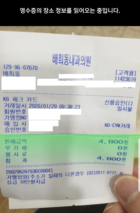 영수증 사진을 선택하면,